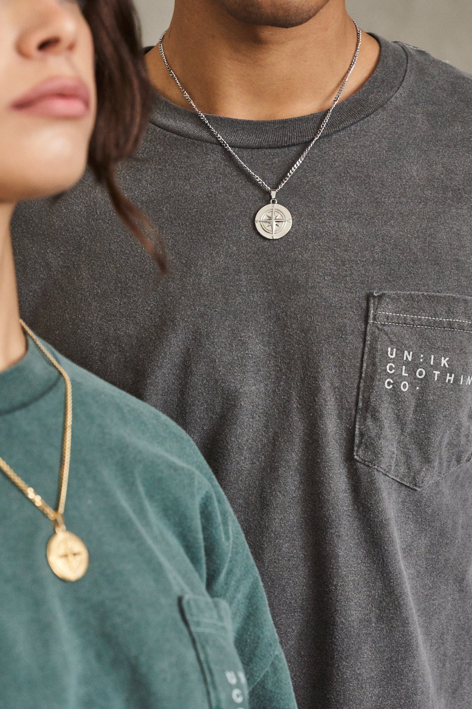 BRANDING: COMPASS ENGRAVED. ESSENTIALS LOGO STAMP ON REVERSE
