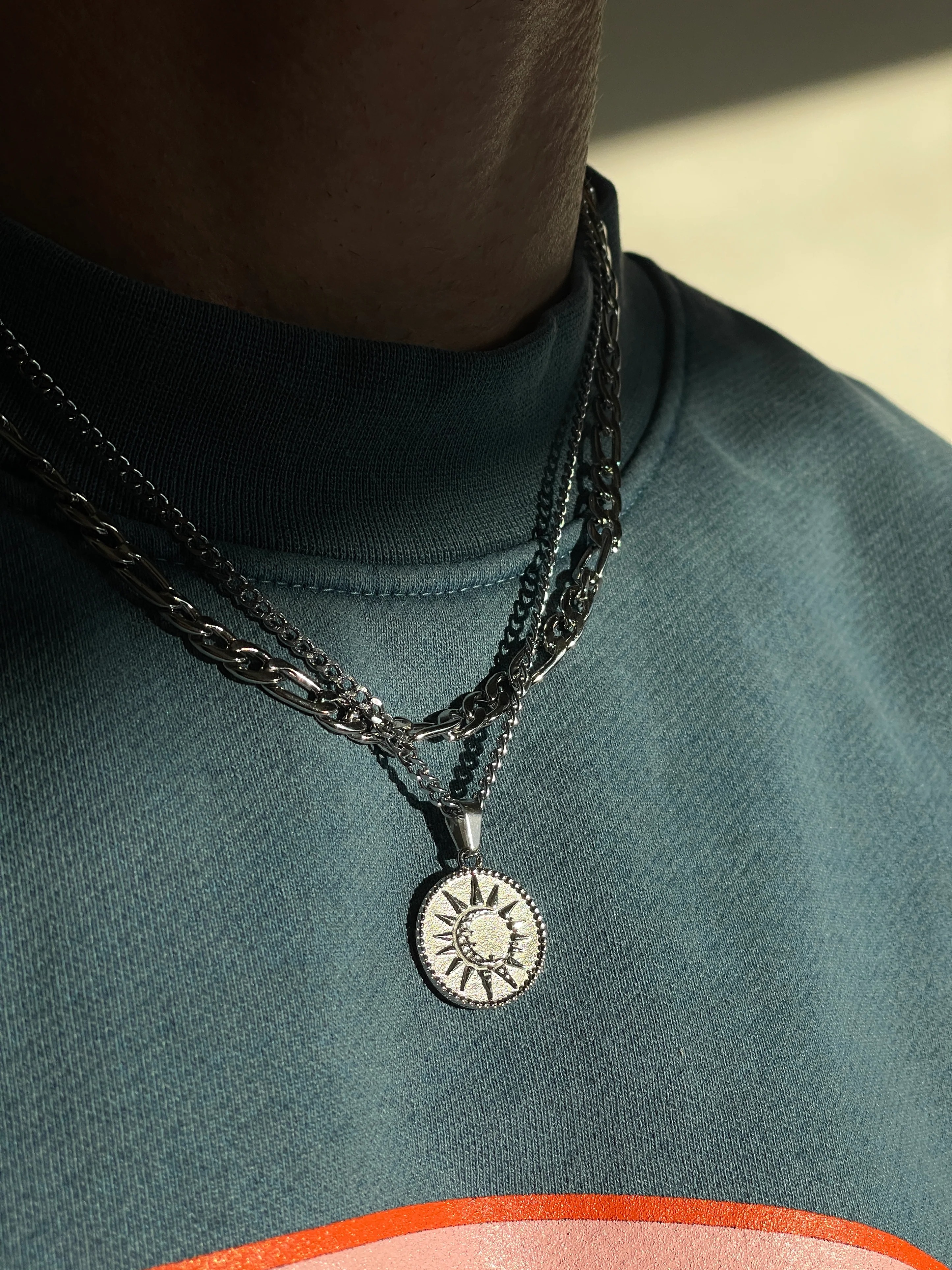 HANGS LOWER DUE TO PENDANT THAN FIGARO OR CUBAN SO CAN BE MATCHED TOGETHER.