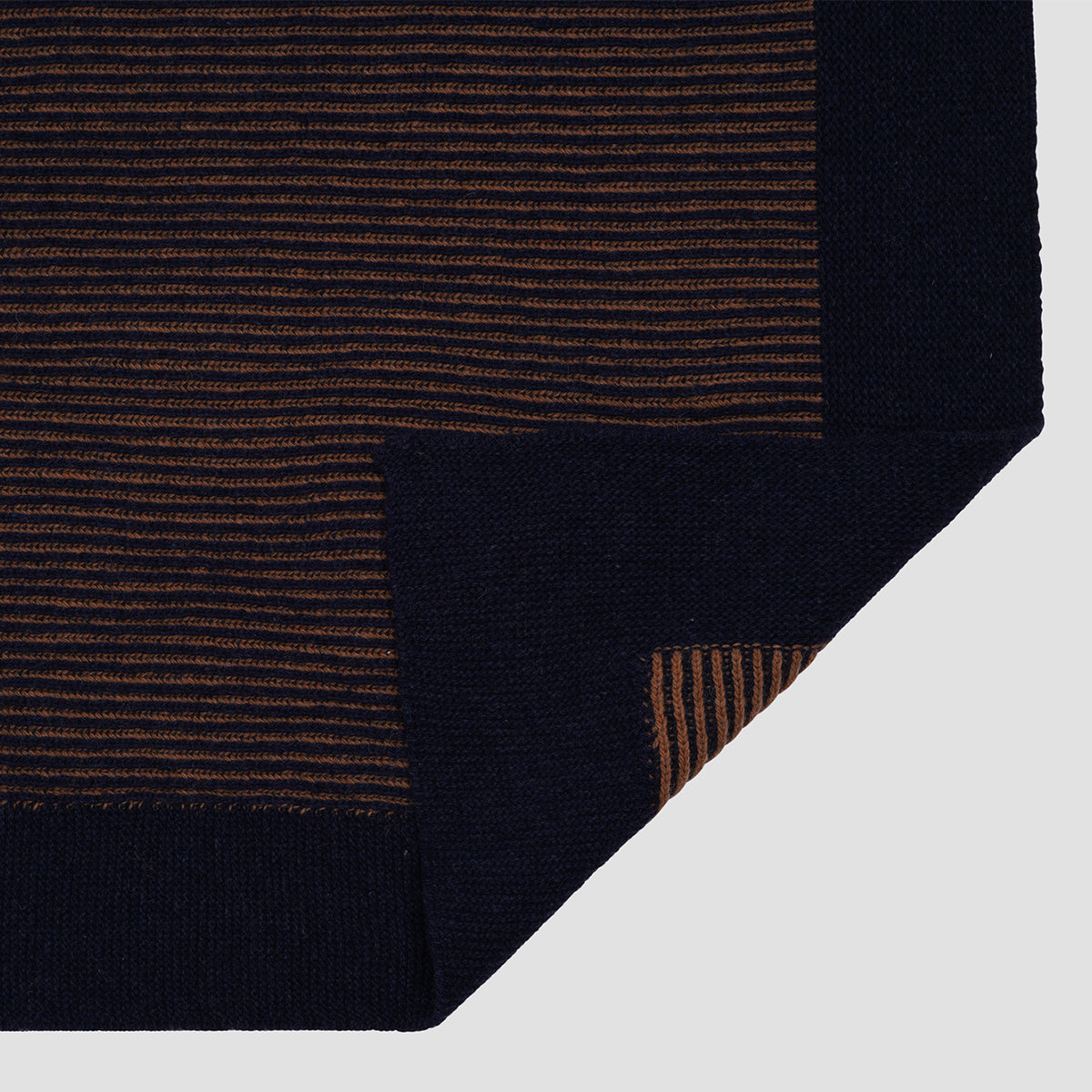 Reminiscent of handcrafted knitwear, our Navy striped knitted throw features alternating weaves in dark navy and warm caramel tones. Woven from a wool blend, these throws are super soft and versatile. Add to the end of your bed for a cosy finishing touch, or drape over an armchair for an effortless look.