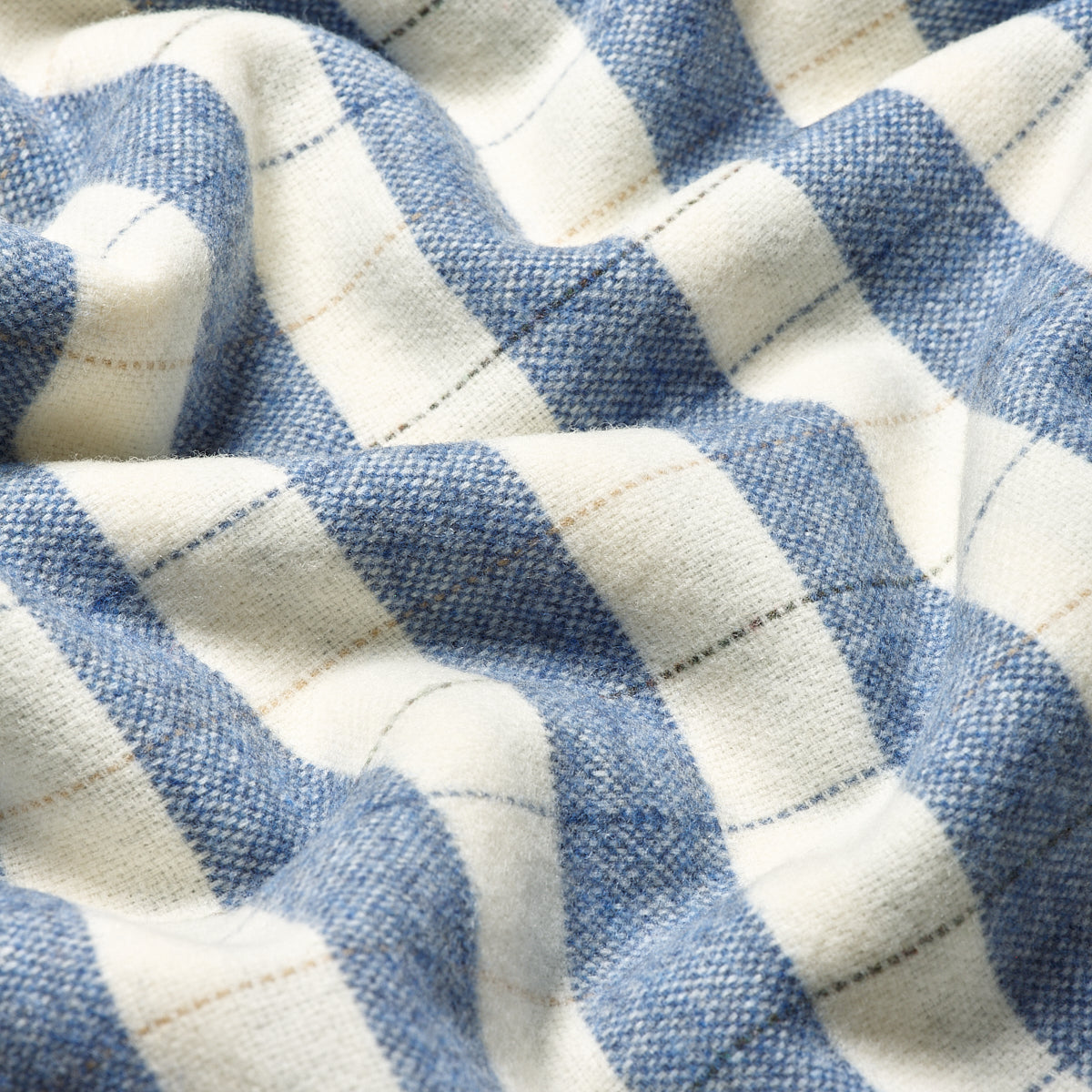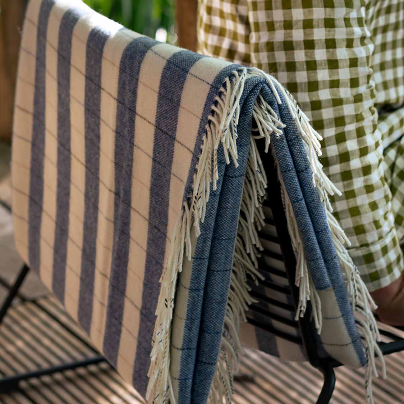 Add an extra cosy layer to your bed with this Warm Blue Checked Stripe Wool Blanket. A dominant stripe of Warm Blue and Birch (a neutral off-white) is crossed with detailed stitching, lending this blanket a heritage appeal. Made in Yorkshire from super soft merino wool using traditional methods, this woollen blanket is designed to go beautifully with the colours in our cotton and linen bedding collections. Layer up and snuggle down.
